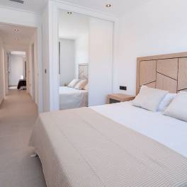 Deze gelijkvloerse woningen bestaan uit drie tweepersoonsslaapkamers (allemaal met inbouwkasten), twee badkamers (waarvan één en-suite), een volledig ingerichte moderne keuken en een open woon-/eetkamer die uitkomt op de privétuin met zwembad. Een trap leidt naar een groot privédakterras met prachtig uitzicht. Er is parkeergelegenheid op het perceel.