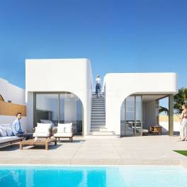 Moderne Villa’s met 3 Slaapkamers, Privézwembad en Golfzicht in Los AlcázaresDeze prachtige villa’s zijn gelegen in Los Alcazares, een van de meest gewilde kustplaatsen van de Costa Cálida. Gezegend met het hele jaar door zonneschijn, fijne zandstranden en een ontspannen mediterraan ritme, combineert het gebied perfect de charme van de kust met modern gemak. Nabijgelegen golfbanen, jachthavens en levendige promenades maken het ideaal voor zowel ontspanning als luxe.Vanaf deze toplocatie bevinden dagelijkse voorzieningen zoals supermarkten en restaurants zich op minder dan 1 km afstand, het strand op slechts 2 km afstand en het levendige stadje San Javier op 7 km ten noorden. Het culturele centrum van Cartagena ligt op 25 km afstand, de luchthaven van Murcia op 25 km en de luchthaven van Alicante op ongeveer 85 km. Uitstekende wegverbindingen maken het verkennen van de Costa Cálida en de Costa Blanca moeiteloos.De villa’s te koop in Los Alcazares Murcia maken deel uit van een exclusieve woonwijk met een open uitzicht op de omliggende golfbaan. De ontwikkeling benadrukt privacy en harmonie met de natuur en biedt aangelegde gemeenschappelijke ruimtes, rustige wandelpaden en een veilige omgeving waar bewoners kunnen ontspannen en genieten van een ontspannen levensstijl.Elke villa beschikt over elegante, moderne architectuur met open woonruimtes die baden in natuurlijk licht dankzij de grote ramen van vloer tot plafond. De villa’s beschikken over drie ruime slaapkamers, twee badkamers, een volledig uitgeruste open keuken en een lichte woonkamer die uitkijkt op panoramische terrassen en een privézwembad. Extra hoogtepunten zijn de solariums op het dak, kelders tot 115 m² en voorgeïnstalleerde airconditioning. Hoogwaardige materialen en verfijnd vakmanschap zorgen voor blijvend comfort, verfijning en een authentieke mediterrane sfeer. RMU-00282