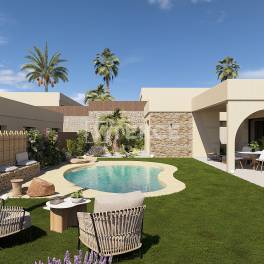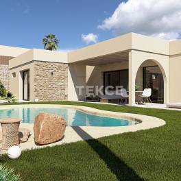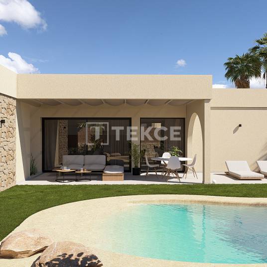 2- en 3-Slaapkamer Luxe Villa’s in een Mediterraan Wellness Resort in MurciaVilla’s te koop in Murcia Spanje, gelegen in de regio Costa Cálid, maken deel uit van een exclusief wellness- en sportresort. De regio staat bekend om haar warme klimaat, adembenemende natuurlijke landschappen en nabijheid van golfbanen en zandstranden. Met meer dan 300 zonnige dagen per jaar is deze bestemming perfect voor wie op zoek is naar een ontspannen mediterrane levensstijl.De ontwikkeling is strategisch gelegen met gemakkelijke toegang tot dagelijkse voorzieningen en recreatieve attracties. Lokale winkels, restaurants en supermarkten liggen op slechts 5 km van het resort. Het bruisende stadscentrum van Murcia ligt op 12 km afstand en biedt een verscheidenheid aan culturele en entertainmentmogelijkheden. De prachtige Middellandse Zeestranden liggen op 18 km afstand en zijn ideaal voor ontspanning aan zee. De villa’s zijn goed verbonden met transportknooppunten: de internationale luchthaven van Murcia ligt op 20 km afstand en de luchthaven van Alicante op 75 km.Het resort is ontworpen om een harmonieuze levensstijl te bevorderen en biedt een scala aan hoogwaardige faciliteiten. Bewoners kunnen genieten van golfbanen, wellnesscentra en spa-diensten, evenals wandel- en fietspaden die naadloos in de natuurlijke omgeving passen. De omheinde gemeenschap biedt 24/7 beveiliging en conciërgediensten voor gemoedsrust. Privétuinen en zwembaden maken de buitenervaring compleet en bieden een ideale plek om te ontspannen.Elke villa heeft een eigentijds Mediterraan ontwerp met vloeiende architecturale lijnen en lichte, open ruimtes. Er zijn twee indelingsopties beschikbaar: een villa met twee slaapkamers en 2,5 badkamers of een villa met drie slaapkamers en 3,5 badkamers. Beide opties beschikken over ruime open woonruimtes met grote ramen die het natuurlijke licht maximaliseren. De keukens, ontworpen in Italië, zijn volledig uitgerust met hoogwaardige apparatuur, terwijl aerothermische verwarming energie-efficiëntie garandeert. De woningen zijn tevens voorzien van vloerverwarming, hoogwaardige afwerkingen en duurzame kenmerken zoals groene daken en optionele zonnepanelen. RMU-00247
