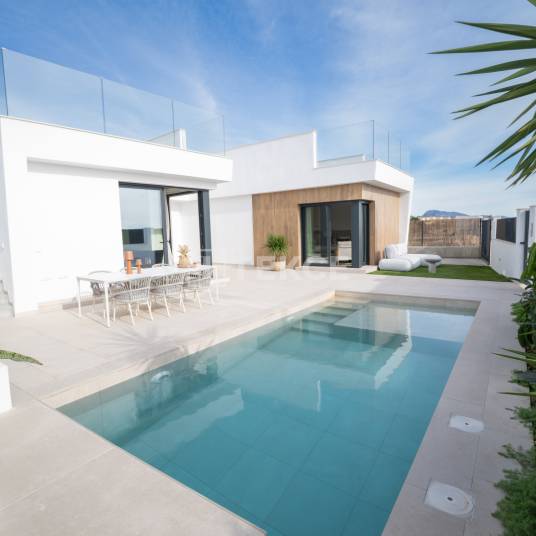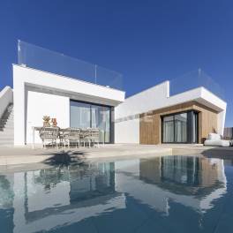 Luxe 3-Slaapkamer Vrijstaande Villa’s met Panoramisch Uitzicht op de Golfbaan in MurciaDeze prachtige villa’s zijn genesteld in een gewild golfresort en bieden een overvloed aan gemakken, zoals een sociale club en een winkelcentrum met alle noodzakelijke voorzieningen, waardoor een echt comfortabele levensstijl op deze pittoreske locatie wordt gegarandeerd.Deze villa’s te koop in Murcia liggen op slechts een korte wandeling van de golfbaan, het winkelcentrum en de sociale club, en zijn ook gunstig gelegen op 10 km van de internationale luchthaven van Murcia en op slechts 20 km van het bruisende stadscentrum, waar je tal van boeiende musea en ontzagwekkende architectuur kunt verkennen.Elke villa is gebouwd op een perceel van 280 of 380 m², afhankelijk van het model, en is voorzien van een privézwembad, weelderig groen en parkeergelegenheid.Stap binnen en je wordt begroet door een chique en verfijnd interieur. Elk model heeft 3 tweepersoonsslaapkamers, waaronder een hoofdslaapkamer met een eigen en-suite badkamer, een gedeelde badkamer, een open keuken en eethoek, evenals een royale leefruimte om te ontspannen en tot rust te komen. RMU-00079