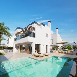 Luxe villa’s met 4 slaapkamers, zwembad en solarium in Torre-Pacheco, MurciaDeze moderne villa’s liggen aan het prestigieuze Santa Rosalía-meer en Life Resort aan de Costa Cálida en worden omgeven door weelderige landschappen, turquoise wateren en exclusieve recreatievoorzieningen. Het resort biedt een serene omgeving, geïnspireerd door het mediterrane leven, en combineert natuur, comfort en gemeenschapszin op slechts enkele minuten van de zee.Deze villa’s te koop in Torre-Pacheco, Murcia liggen op 2 km van supermarkten en restaurants, op 5 km van het stadje Torre-Pacheco, op 5 km van de zandstranden van de Mar Menor, op 6 km van golfbanen zoals Mar Menor Golf, op 27 km van de bruisende stad Cartagena, op 30 km van de luchthaven van Murcia en op 95 km van de luchthaven van Alicante.Het beveiligde resort beschikt over 24-uurs beveiliging, een kunstmatig kristalhelder meer, sportfaciliteiten, fietspaden, weelderige groene zones en een sociaal clubhuis met eetgelegenheden. Elk detail is ontworpen om een veilige, levendige en gezinsvriendelijke levensstijl te creëren, omringd door natuurlijke schoonheid.Elke villa heeft moderne architectuur met strakke lijnen en overvloedig natuurlijk licht. Het interieur bestaat uit vier ruime slaapkamers en vijf badkamers, open woonruimtes met een naadloze binnen-buitenverbinding en grote glazen deuren naar privéterrassen en tuinen. Premium afwerkingen, BOSCH-apparatuur en duurzame voorzieningen zoals aerothermische systemen en zonnepanelen zorgen voor zowel luxe als energiezuinigheid. Een privézwembad en een dakterras met een zomerkeuken bieden de perfecte setting om te ontspannen en gasten te ontvangen onder de mediterrane zon. RMU-00286