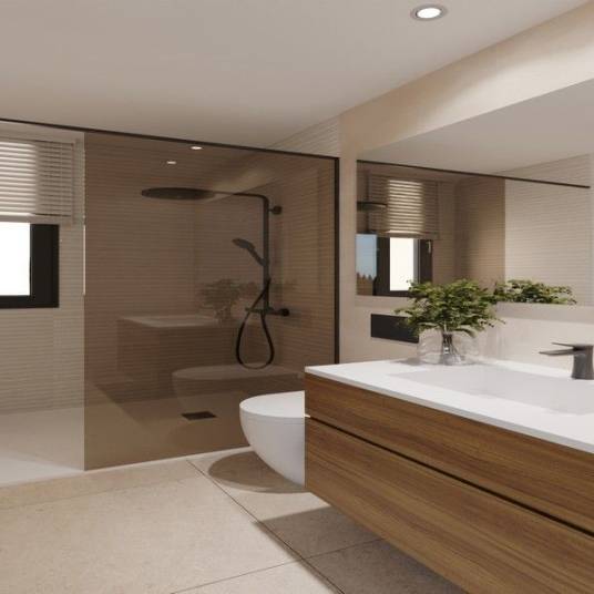 Villa Martina no:3, plot size 601 sqm, garden 449 sqm and solarium 43 sqm – WEST EAST FACING“Martina” Villas: Three bedrooms, two bathrooms – only 5 available, 35 soldSpacious new-built villas with large plots at Hacienda del Alamo Golf Resort.The La Hacienda villas have been specifically designed to match the surroundings at Hacienda del Alamo Golf Resort. The design is perfectly integrated in the natural setting near the Carrascoy mountains.The villas are located at a privileged location at the resort, secluded and yet with all the resort’s facilities at walking distance.The generous plot size allows each new owner to enjoy a landscaping design to best suit their wishes. With plots of up to 657 square meters, let your imagination run wild and create the perfect ambience for your residence in this authentic part of Spain.With the elevated position of the plots, the views over the resort, golf course and mountains are simply the best you can find in the Costa Calida.The villa design is bright and spacious and uses the perfect Mediterranean climate to maximum effect.Each home offers the opportunity to create various areas to enjoy: the spacious lounge, semi-covered terrace around the swimming pool and the large solarium.With a striking, modern design offset by natural stone these villas these villas make for the perfect home in the Region of Murcia. And yes, the launch prices are extremely attractive, making it a solid investment as well.Reserve one of these stunning villas today and enjoy the best quality of life in Mediterranean Spain.Features:Plot sizes from 600 to 616 square metersFully fenced plot108 square meters construction43 square meters solarium23 square meters semi-covered terrace20 square meters covered parkingPrivate swimming poolFitted kitchenLuxury bathroomsAir conditioning PRE-installationAerothermia hot water supplyRoca brand sanitary warePayment terms:Reservation 10,000 €Contract on obtaining building licence 10%Contract + 90 days 20%Contract + 180 days 20%Balance on completion (total 14 months)For more information contact Resort Villas Murcia, estate agents specialized in properties at Hacienda del Alamo Golf Resort.Hacienda del Álamo Golf Resort is without a doubt the most prestigious golf resort in the Costa Cálida. The gently undulating site at the feet of the Sierra de Carrascoy offers outstanding panoramas and views. The resort offers spaciousness and a wealth of services.Located near the cities of Murcia and Cartagena and a fantastic choice of beaches, the resort is just two minutes from the typical Murcia town of Fuente Álamo. The town offers everything one could need: from a 24-hr medical centre to supermarkets and specialty stores, restaurants and bars, everything to enjoy the perfect Mediterranean lifestyle.Hacienda del Álamo Golf Resort plays host to the largest golf course in the Costa Cálida, an outstanding golf academy and sports club. For dining entertainment there are several restaurants and bars, open throughout the year.Look no further if you wish to find the perfect place in Spain, Hacienda del Álamo Golf Resort is one of those rare places where you can start living the dream…..