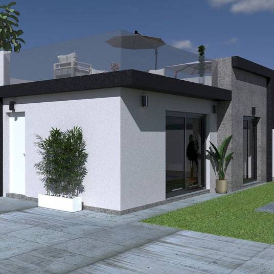 Het ontwerp met één verdieping zorgt voor maximaal comfort, terwijl u op het grote dakterras het hele jaar door van de zon kunt genieten.