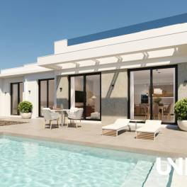 Op zoek naar een exclusieve woonervaring in een knap golfresort? Deze prachtige nieuwbouwvilla’s op het Hacienda del Álamo Golf Resort, ten zuiden van Murcia, combineren luxe, rust en een schitterende natuurlijke omgeving. Het golfdomein zelf is een bron van sereniteit, met adembenemende uitzichten over de groene fairways en het mediterrane landschap. Hier geniet je volop van de echte zuiderse levensstijl, waar ontspanning en comfort hand in hand gaan. Deze alleenstaande villa’s bieden alles voor een outstanding woonervaring. Ze beschikken over 2 slaapkamers en 2 badkamers, een ruime en lichte leefruimte met open keuken en hoogwaardige afwerking. Elke woning heeft een prachtige privétuin met aangelegd terras en een privézwembad. Daarnaast beschikken ze over een ruim solarium met panoramisch uitzicht en een carport voor het parkeren van je wagen in de welgekomen schaduw. De authentieke stad Murcia ligt op korte rijafstand en biedt een perfecte mix van Spaanse cultuur, gastronomie en levendige pleinen. De luchthaven van Murcia bereik je in slechts 20 minuten, waardoor deze locatie ideaal is voor zowel permanente bewoning als vakantiegebruik. Dankzij de scherpe prijzen bieden deze villa’s een uitstekende investering in een sterk opkomende regio. Of je nu op zoek bent naar een 2de verblijf, een slimme belegging of een vaste woonplaats onder de zon, dit is een mooie opportuniteit. Meer info? Vraag maar raak!