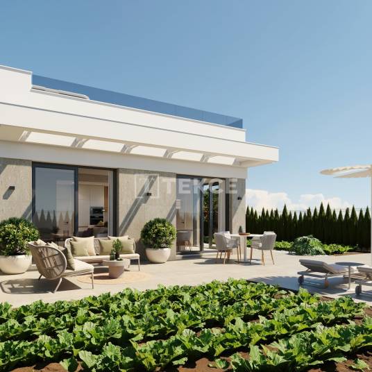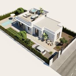 Vrijstaande villa’s met 2 slaapkamers en zwembad in Fuente ÁlamoDeze villa’s zijn gelegen in Hacienda del Álamo in Fuente Álamo, Murcia. Hacienda del Álamo is een goed gevestigd residentieel golfresort dat bekendstaat om zijn rustige omgeving, aangelegde landschappen en hoogwaardige recreatieve voorzieningen. Het gebied biedt een ontspannen mediterrane levensstijl met open groene ruimtes, een mild klimaat het hele jaar door en gemakkelijke toegang tot nabijgelegen steden en kustbestemmingen aan de Costa Cálida.De villa’s te koop in Fuente Álamo, Murcia zijn ideaal gelegen nabij voorzieningen die binnen het resort zelf toegankelijk zijn. De villa’s liggen op ongeveer 3 km van dagelijkse voorzieningen zoals winkels, cafés en restaurants in het dichtstbijzijnde stadscentrum. De internationale luchthaven Región de Murcia bevindt zich op ongeveer 23 km afstand, terwijl mediterrane stranden en de kustlijn van de Mar Menor in ongeveer 30 km te bereiken zijn. De stad Murcia ligt op circa 30 km afstand en Cartagena op ongeveer 45 km.De urbanisatie is ontworpen met een laagbouw- en lage-dichtheidsopzet, waarbij vrijstaande villa’s worden gecombineerd met aangelegde gemeenschappelijke zones en brede interne wegen. Groenzones, recreatieve voorzieningen en golfbanen zijn door het hele resort geïntegreerd, wat zorgt voor een georganiseerde en veilige woonomgeving die geschikt is voor zowel permanente bewoning als vakantiegebruik.De villa’s beschikken over een moderne open indeling met een ruime woon- en eetkamer die verbonden is met een eigentijdse keuken. Elke villa omvat twee slaapkamers en twee badkamers, ontworpen met oog voor comfort en functionaliteit. Grote ramen zorgen voor veel natuurlijk licht en bieden directe toegang tot de buitenruimtes. De villa’s zijn voorzien van een privé solarium, een parkeerplaats en hoogwaardige afwerkingen in het gehele pand. RMU-00295