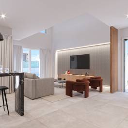 Met drie ruime slaapkamers en twee volledig afgewerkte badkamers bieden deze woningen alle comfort die u zoekt. De keukens zijn volledig uitgerust met moderne elektrische apparatuur, en de pre-installatie van airconditioning zorgt ervoor dat uw woning op elk moment van het jaar aangenaam is. De woonkamer, met een indrukwekkend plafond van dubbele hoogte, creëert een gevoel van licht en ruimte, wat de moderne uitstraling van de villa’s versterkt.
