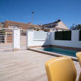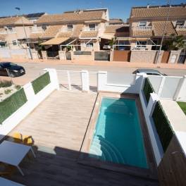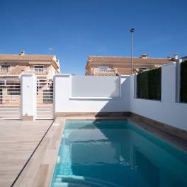 Nieuwbouw villa met 2 slaapkamers, privézwembad en dakterras te koop in San Javier.~ ~ De woning bestaat uit 2 slaapkamers en 2 badkamers (waarvan een en suite), woon-eetkeuken, patio, tuin, privézwembad en dakterras met zomerkeuken. Het is gelegen in een nieuwbouwcomplex van 24 villa’s van een of twee verdiepingen met privézwembad, terras en dakterras met zomerkeuken waar je elke dag van het jaar van de zon kunt genieten.~ ~ Ontworpen met een eigentijdse stijl en een open concept, bestaande uit een volledig uitgeruste keuken en een woon-eetkamer.~ ~ Het project ligt in San Javier (Murcia), dicht bij het strand, omringd door diensten, parken, sportfaciliteiten en verschillende golfbanen.~ ~ De woning voldoet aan de hoogste normen en is uitgerust met:~ Privé zwembad met douche.~ Volledig ingerichte keuken voorzien van oven, magnetron, koelkast, geïntegreerde vaatwasser, kookplaat en afzuigkap.~ Verlichting: zowel in het huis (eetkamer, keuken, gangen en badkamers) als in de buitenruimtes.~ Kledingkasten met laden.~ Badkamers volledig uitgerust met toilet, badkamermeubel, spiegel en douche met schermen.~ Pre-installatie voor gekanaliseerde airconditioning.~ Solarium met zomerkeuken.~ Parkeerplaats op het perceel.~ ~ ~ San Javier ligt dicht bij alle voorzieningen met gemakkelijke toegang tot het strand, watersporten, winkels en het transportnetwerk.~ ~ Hier kun je genieten van alle faciliteiten die San Javier te bieden heeft, zoals de plaatselijke winkels, bars en restaurants, maar ook dicht bij de winkelcentra, de luchthaven van Murcia en alle mooie plekjes langs de Mar Menor. ~ ~ Het vliegveld van Corvera/Murcia ligt op 30 minuten rijden en dat van Alicante op 45 minuten.