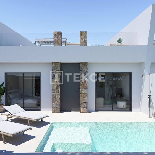 Luxe 2-Slaapkamerwoningen met Privézwembaden in RoldánGelegen in Roldán, binnen de gemeente Torre Pacheco, staat dit gebied bekend om zijn ontspannen mediterrane levensstijl, vlakke omgeving en gemakkelijke toegang tot de Costa Cálida-kust. De stad biedt een goed ontwikkeld woonmilieu met supermarkten, restaurants, medische voorzieningen en sportfaciliteiten die het hele jaar door beschikbaar zijn. De nabijheid van golfresorts en kustbestemmingen maakt het gebied aantrekkelijk voor zowel permanente bewoning als vakantiegebruik. Roldán profiteert ook van goede wegverbindingen naar nabijgelegen steden en regionale transportknooppunten.De woningen in Roldán liggen ongeveer 0,5 km van dagelijkse voorzieningen zoals winkels, cafés en restaurants. Het dichtstbijzijnde stadscentrum ligt op ongeveer 3 km afstand, terwijl de stranden langs de Mar Menor en de Middellandse Zeekust binnen ongeveer 5 km bereikbaar zijn. Verschillende golfbanen bevinden zich binnen 8 km, en de dichtstbijzijnde luchthaven ligt op ongeveer 35 km, met nationale en internationale verbindingen.De woningen bevinden zich in een goed georganiseerde woonwijk die is ontworpen om privacy, functionaliteit en gemakkelijke toegang te bieden. Het ontwerp omvat duidelijk aangegeven voetgangersroutes, toegangswegen voor voertuigen en aangewezen parkeerplaatsen. Buitenruimtes zijn zorgvuldig gerangschikt om de blootstelling aan zonlicht te maximaliseren en een aangename woonomgeving te creëren. Het algehele ontwerp ondersteunt comfortabel dagelijks leven terwijl een samenhangende en ordelijke omgeving behouden blijft.Het interieurontwerp richt zich op functionaliteit en natuurlijk licht, met 2 slaapkamers en 2 badkamers die efficiënt gebruik van de ruimte mogelijk maken. De woonruimtes zijn ontworpen om naadloos verbinding te maken met buiten terrassen, waardoor binnen-buiten wonen wordt versterkt. Keuken en woonruimtes zijn proportioneel ingericht voor dagelijks comfort, terwijl opslag- en circulatieruimtes zijn geoptimaliseerd voor langdurig gebruik. Afwerkingen zijn geselecteerd voor duurzaamheid en onderhoudsgemak, waardoor de woningen geschikt zijn voor zowel permanente bewoning als verhuur. RMU-00300