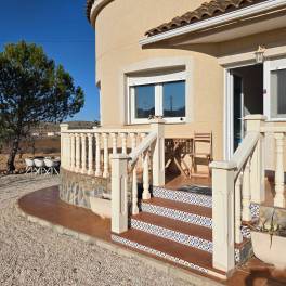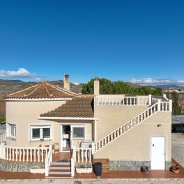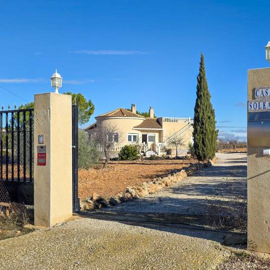 Het terreinVia de elektrisch bedienbare poort wordt toegang geboden tot het geheel omheinde ruime terrein. Rondom de villa ligt het tuingedeelte en is beplant met onder andere vele amandelbomen. Er is een carport en voldoende extra parkeergelegenheid. Voor opslag is er een tuinhuis en bovendien is er bij het zwembad een stenen berging. Dit is een ruime berging met batterijopslag voor de achterliggende zonnepanelen en heeft nog voldoende ruimte over voor het creëren van bijvoorbeeld een fitnessruimte. Natuurlijk mag een zwembad – met omliggend terras en buitendouche – niet ontbreken. Aan het zwembad bevindt zich een zeer royale ‘gazebo’ en deze overkapping met keuken/bar gedeelte biedt een fantastische plek voor lange zomeravonden, al dan niet met een paella of tapas met een heerlijke lokale wijn; de bodega ligt vlakbij de villa.De villaDe villa is toegankelijk via de woonkamer en via de keuken. Er loopt een terras rondom tussen deze entrees en zeker het deel bij de woonkamer biedt een gezellige plek om van het uitzicht te kunnen genieten. De woonkamer heeft een zit- en eetgedeelte en heeft extra deuren naar het terras. De ruime keuken is goed uitgerust en heeft via het terras toegang tot de trap naar het zeer royale dakterras dat een weids uitzicht biedt over de omliggende bergen en het gezellige Cañada del Trigo. De villa is voorzien van drie slaapkamers waarvan één met een ensuite badkamer. Twee slaapkamers zijn voorzien van inbouwkasten. Er is tenslotte nog een extra aparte badkamer.VoorzieningenDe villa is aangesloten op elektriciteit en water. Er zijn zonnepanelen met batterijen aanwezig die zorgen voor minimale maandelijkse energielasten. In de villa is airconditioning aanwezig die kan verwarmen en koelen. Daarnaast is er een pelletkachel aanwezig. De ramen zijn voorzien van screens en horren.Cañada del TrigoDe villa is gelegen aan de rand van het dorpje Canada del Trigo, met omliggend bergen, amandel-, wijn- en olijfboomgaarden die een rustige en landelijke sfeer creëren met Spaanse charme. Er bevinden zich in de mooie natuur vele wandel-, hiking- en fietsroutes en voor de liefhebber zijn er diverse bodega’s te vinden. Het gezellige Pinoso waar alle dagelijkse voorzieningen te vinden zijn, ligt vlakbij en grotere steden zoals Alicante en Murcia (beiden met luchthaven) en de stranden liggen op 50 minuten rijden. Wij laten je deze villa graag zien; maak nu een afspraak voor een bezichtiging!Deze woning is exclusief in de verkoop, dit betekent dat alle documenten vooraf zijn gecontroleerd en alles in orde is of in orde gebracht kan worden.