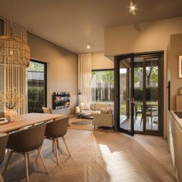 In 2023 zijn er in de eerste fase maar liefst 40 gloednieuwe lodges opgeleverd en in de verhuur gegaan. Sinds maart focussen we ons op de tweede fase. Toen zijn we gestart met de verkoop van diverse compleet nieuwe woningtypen. De nieuwe 4-, 6- en 8-persoons woningen kenmerken zich niet alleen door hun unieke uitstraling en hun eigentijdse interieur met veel comfort en luxe, maar ook door verschillende extra’s zoals in- en outdoor wellness, plungepool en buitenkeuken met BBQ.