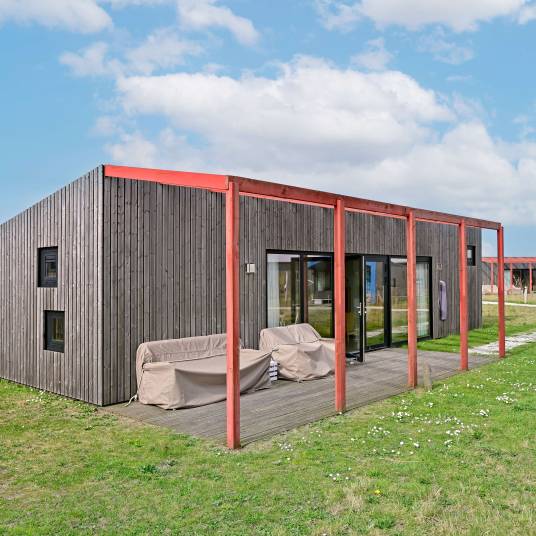 • Speels aangelegd park met kleurrijke lodges, vlak langs de duinrand.