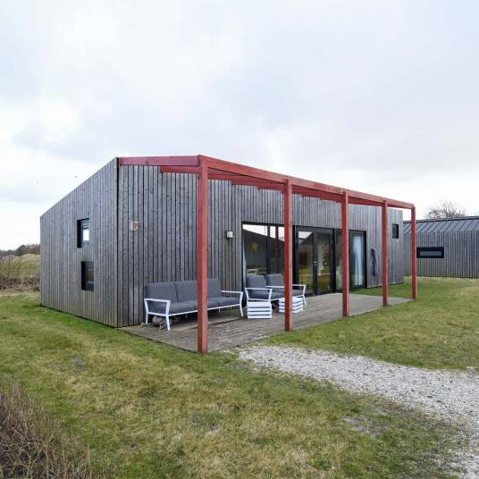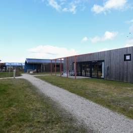 - Speels aangelegd park met kleurrijke lodges, vlak langs de duinrand.