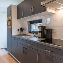 de La Mer (kids) 4 – De de La Mer (kids) 4 is een gelijkvloers chalet, geschikt voor 2 volwassenen en 2 kinderen. Het chalet is speciaal ingericht voor kinderen. In de kinderaccommodatie bent u van alle gemakken voorzien en is er genoeg te beleven voor de kids. In de woonkamer is er een zithoek met televisie, een eethoek en een ruime keuken. De kinderslaapkamer is voorzien van een stapelbed van 1.60m (geschikt voor kinderen tot 8 jaar). Daarnaast is er nog een slaapkamer met tweepersoonsbed en een badkamer met douche, wastafel en toilet. Bij de woning kunt u 1 auto parkeren.