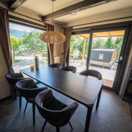 Panorama Lodge 6 – Niet alleen heeft de Panorama Lodge 6 een ruim terras, vanaf uw vakantiewoning heeft u ook een onbetaalbaar uitzicht op de omringende bergen. In dit vrijstaande en gelijkvloerse chalet is ruimte voor 6 personen. De woonkamer heeft een gezellige zithoek met televisie en rond de grote houten tafel kunt u makkelijk met z’n allen eten. In de open keuken vindt u onder andere een vaatwasser, oven, waterkoker en koffiezetapparaat. Er zijn in totaal 3 slaapkamers aanwezig. Ook is er een ruime badkamer met douche en er is een apart toilet aanwezig. Buiten vindt u een zonneterras met tuinmeubilair. Je kunt bij de woning 1 auto parkeren en er is gratis wifi beschikbaar.