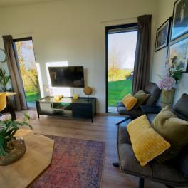 Het chalet biedt ruimte aan maximaal 4 personen. De vele ramen zorgen voor een lichte en open uitstraling, terwijl de natuurlijke materialen bijdragen aan een warme en moderne sfeer. De praktische indeling, met twee slaapkamers, een ruime living en een open keuken, maakt de woning volledig instapklaar.
