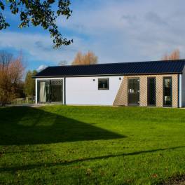 Dit gelijkvloerse, vrijstaande chalet is praktisch ingericht en voorzien van alle gemakken. De lichte woonkamer, twee comfortabele slaapkamers en de moderne badkamer zorgen voor een aangename en ontspannen sfeer. Grote raampartijen en een schuifpui naar het terras zorgen voor veel natuurlijk licht en direct contact met de buitenruimte.