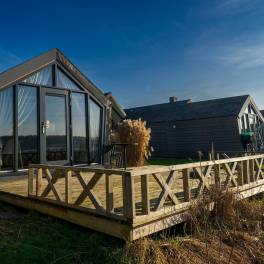 Het chalet is gelijkvloers en is geschikt voor 4 personen. In de modern ingerichte woonruimte vindt u een zithoek met televisie, een eettafel met stoelen en een keuken, die onder andere voorzien is van een inductiekookplaat, een waterkoker en koffiezetapparaat.