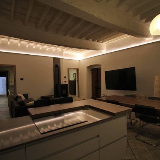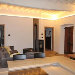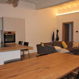 Gelegen op de eerste verdieping van een 17e eeuws gebouw in het pittoreske historische centrum van Dogliani, is het pand vakkundig gerestaureerd om de originele architectonische elementen te versterken. Het gewelfde plafond van de grote woonkamer, de authentieke decoratieve details en de tijdloze sfeer maken het uniek.