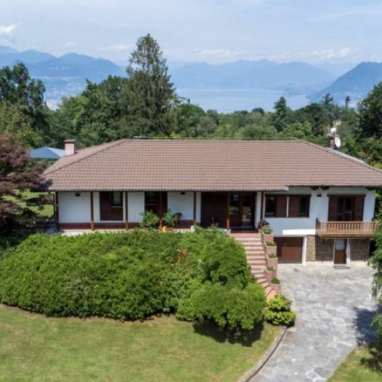 De woning is volledig vrijstaand, heeft een dominante en besloten ligging, maar ligt toch dichtbij het stadscentrum en essentiële voorzieningen. De woning is omgeven door een grote tuin met prachtige hoge bomen en biedt een panoramisch uitzicht op het Lago Maggiore en de omliggende Alpentoppen.