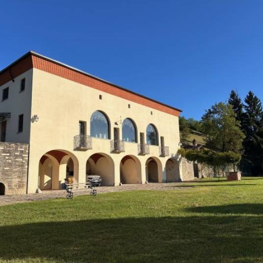 De hoofdvilla heeft twee verdiepingen bovenop de begane grond met prachtige portieken. Vanuit de ruime entree leidt een gesloten loggia met glazen ramen naar de salon, gekenmerkt door gewelfde plafonds en een mooie open haard, een grote keuken met toegang tot het panoramische terras, een badkamer en een wasruimte. Op de bovenverdieping bestaat het slaapgedeelte uit een studeerkamer, een hoofdslaapkamer met fresco’s op het plafond, 3 slaapkamers en twee zeer grote badkamers. De drie verdiepingen van de villa zijn niet alleen verbonden door een interne trap, maar ook door een moderne lift.