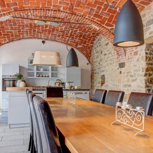 In dit tijdloze decor vinden we Casa Carlin, een woning die de oorspronkelijke charme van de huizen in de Langa heeft behouden. De massieve bakstenen gewelven, de zichtbare houten balken en de stenen muren creëren warme en sfeervolle ruimtes, waar de elegantie van de traditie samengaat met modern comfort. De grote keuken en de woonkamer op de begane grond vormen het kloppende hart van het huis. Op de eerste verdieping bevinden zich drie ruime slaapkamers, twee badkamers, een balkon en een terras, op de tweede verdieping nog eens twee slaapkamers, twee badkamers, een balkon en een romantisch overdekt terras waar u kunt genieten van het omringende landschap.
