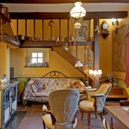 Twee knusse en romantische slaapkamers, met balken die het karakter van de zolder benadrukken en een sfeer van een berghut creëren.