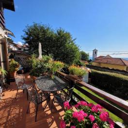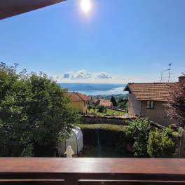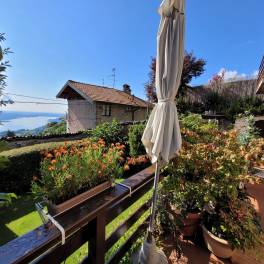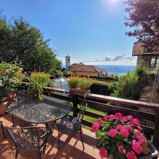 Er is directe toegang via een openslaande deur naar een overdekt terras, compleet met eettafel: een ideale plek om te genieten van het prachtige uitzicht dat zich uitstrekt van het dorp Fosseno tot aan het Lago Maggiore en verder in de verte naar de meren van Monate en Varese, en helemaal tot aan Milaan met zijn typische Skyline.