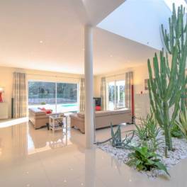 De villa is geheel gelijkvloers en bestaat uit een grote entree (14 m²) met een toilet en garderobe, een woon-/eetkamer van 83 m² met een gashaard, een volledig uitgeruste keuken (13 m²) met een bijkeuken (6 m²) allemaal met toegang tot een terras op het zuidwesten. Tevens is er een wasruimte (6 m²), een hammam (7 m²), een hoofdslaapkamer (16 m²) met eigen badkamer (10 m²) met o.a. douche en een inloopkast. Tweede slaapkamer (11 m²) met een eigen badkamer met o.a. douche en nog eens 2 slaapkamers (11 m² elk) met een gedeelde badkamer.