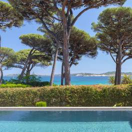 De fraai aangelegde, vlakke tuin biedt optimale privacy en vormt een oase van rust. Het royale zwembad is perfect gepositioneerd en kijkt uit over de Middellandse Zee, waardoor u hier in alle privacy kunt genieten van zon, zee en uitzicht. Verder beschikt het perceel over een jeu-de-boulesbaan en diverse terrassen rondom de woning.