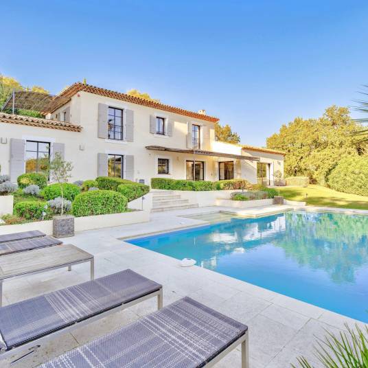 Rondom de villa ligt een fraai aangelegde en goed onderhouden tuin van ca. 2.500 m². Het verwarmde zoutwaterzwembad vormt het middelpunt van de buitenruimte en wordt omringd door zonovergoten terrassen, waar u in alle privacy kunt ontspannen en genieten van het Provençaalse klimaat. De tuin is voorzien van automatische beregening en sfeervolle buitenverlichting.