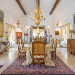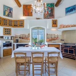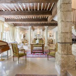 Binnen treft u een ruime hal die toegang geeft tot een lichte en royale woonkamer met open haard. Daarnaast beschikt de woning over een tweede ontvangstruimte en een prachtige volledig uitgeruste keuken, waar functionaliteit en Provençaalse charme samenkomen.