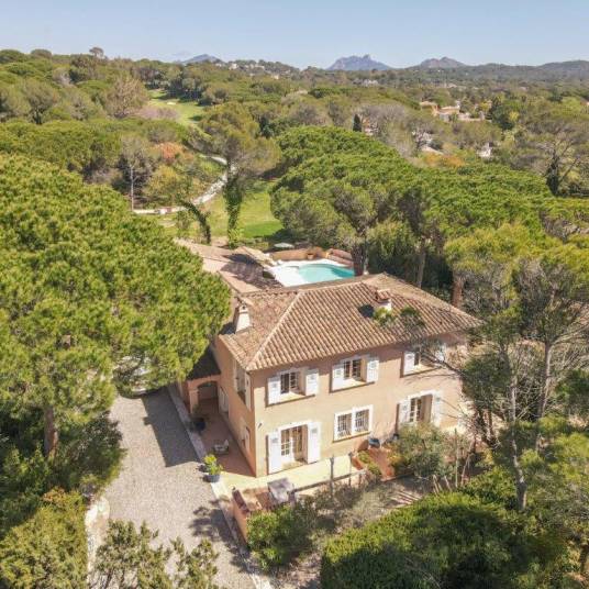 Gelegen in een rustige straat in de gewilde wijk Valescure in Saint-Raphaël, bevindt zich deze sfeervolle Provençaalse bastide van circa 275 m² woonoppervlak. De villa combineert charme, ruimte en licht, en ligt direct aan de golfbaan van Golf de l’Estérel, midden in een groene en rustgevende omgeving met een prachtig uitzicht. Deze uitzonderlijke villa is herbouwd in 2002 en volledig gerenoveerd onder leiding van architect Frank Debard. De ligging is ideaal: op korte afstand van de stranden, het centrum van Saint-Raphaël, het indrukwekkende Massif de l’Estérel en meerdere gerenommeerde golfbanen. De karakteristieke parasoldennen zorgen niet alleen voor een idyllisch landschap, maar bieden ook natuurlijke schaduw.