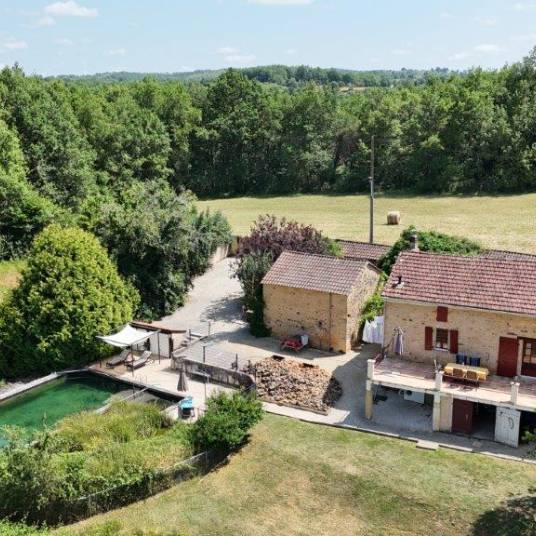 CO-EXCLUSIVITEIT: Charmante natuurstenen Périgordijns ‘ensemble de bâtiments’, gelegen op 6,8 hectare in een rustige en groene omgeving. Het geheel bestaat uit een hoofdwoning met een aangrenzend gastenverblijfje en een tweede, onafhankelijk gastenverblijfje met een natuurzwembad. Buiten is er een cahramte binnenplaats. Zeer interessante en historische omgeving met eeuwenoude stadjes, kastelen en de rivier de Dordogne. Het geheel is jarenlang in gebruik als vakantiehuis, modernisering te voorzien.