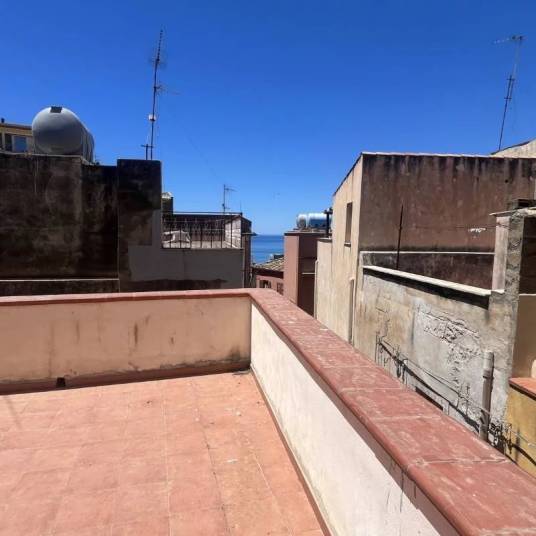 Casa Puccio – SciaccaThis typical Sicilian old town house is located in the center of the south-western Sicilian port town of Sciacca.SurroundingsThe house is certainly more than 100 years old, and the walls are correspondingly thick. The old town of Sciacca is located on a hill, so that this house can only be reached by a very small car. You usually park in the market square in the upper part of the town and then walk about 100-150 m to the house.The propertyThe house has the typical charm of a Sicilian old town property, it extends over three floors and as it is situated on a slope, both the first floor and the first floor have direct access from a small street. Theoretically, the first floor could also be lived in independently and separated from the rest of the house. There is a toilet on both the first floor and the second floor. From the second floor, a relatively comfortable internal staircase leads to the top floor, where we find a roof terrace of around 40 m², which also offers a partial sea view between the houses.The house originally belonged to a Sicilian family who emigrated to Germany and the current owners, the heirs of the former emigrants, are no longer interested in this house, which is why they want to sell it. The house is in an average condition, it can also be described as inhabited, especially since the smaller, damp areas in the house are still being repaired by the current owners. These damp patches are not so much due to the ingress of moisture from outside, but mainly because the house has not been lived in for many months.OptionsThe owners are asking a z#price of €57,000 for this key-ready house with the existing furnishings, which seems justified given the approximately €35,000 invested in recent years