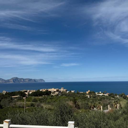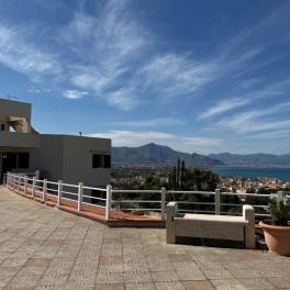 Villa Felice – MongerbinoA huge detached family home set in leafy gardens, Villa Felice offers a phenomenal view, convenient location and a dazzling private pool.Three independent apartments with five bedroomsThe 350m2 villa has been split into three separate units, each with a floor to itself. They have their own living rooms, kitchens and bathrooms. Five spacious double bedrooms are distributed throughout the property, of which three have en-suite bathrooms.The living rooms are the standout spaces in each flat, thanks in no small part to the huge full-wall windows which cover the western side of the property. Offering a perfect sea view across the Gulf of Palermo, and an unbeatable position from which to enjoy the region’s famous sunsets over the mountains in the middle distance, this is a superb bit of design which really unites the interiors of the property with its terraces and ample gardens.Fabulous sea-view swimming poolThe 15m pool in the garden is a real treat, not least for the fact that it enjoys the best of that dazzling natural panorama. A deep poolside area includes a shady portico on the inland side, and a sunny terrace facing towards the coast. The sea itself is only 400m away, and you can also enjoy the rocky face of Monte Catalfano and the rooftops of the charming town of Aspra.The view only improves as you climb up, first to the small covered terrace of the middle apartment, then the huge open one that connects to the living room of the top floor. A staircase up to the flat roof of the property will give you the best panorama of them all.Convenient for travel and the cityAlthough the 1500m2 plot and rural position are certainly big enough to make you feel as though you have left the cares of the world far behind you, Villa Felice is in fact more than conveniently located just a twenty minute drive from Palermo. Indeed, this area has always been a popular choice for the summer houses of the city’s most famous families.The coves and bays of the Mongerbino coastline, the charming fishing community of Aspra and the market town of Bagheria are all on your doorstep. This is an unbeatable spot in which to relax and disconnect while able to get back into the city whenever you need.For a full description of the property please visit our website