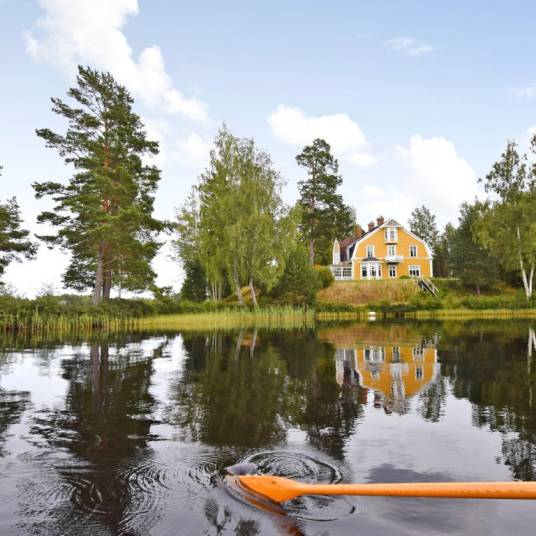 Deze statige, goed bewaarde villa uit 1915 biedt een prachtig uitzicht op het Hjältenmeer vanuit bijna alle kamers, de keuken, de veranda en de zolder. Het huis ligt prachtig en afgelegen en heeft ongeveer 300m privéstrand. Het huis is zorgvuldig gerenoveerd en klassiek ingericht. Op 45m van het huis ligt een steiger. In het meer kan gezwommen, gevaren en gevist worden. Het ruime perceel heeft een eigen oprijlaan en bestaat uit mooie velden en een goed onderhouden tuin.