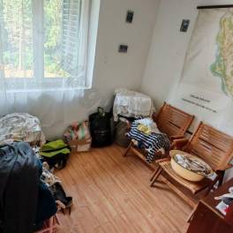 Zoals vaak moet u ook hier door de rommel heen kijken. Het huisje is een 90 m2 groot, gebouwd van steen en bestaat uit drie verdiepingen. Helemaal onderin de woonkeuken en een kamer. Daarnaast nog opslag. Buitenom gaat u dan naar de verdieping en daar als eerste het prachtige terras van waaruit u kunt genieten van een panoramisch uitzicht. Op deze verdieping heeft u twee kamers, WC en douche. Hier ook de (binnen)trap naar de bovenste verdieping waar een ruime overloop is en een slaapkamer.