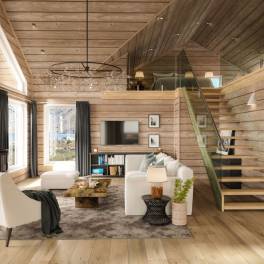 Deze ruime woning heeft een moderne uitstraling. Via de hal komt u in de ruime woonkamer met luxe open keuken waar u heerlijk kunt vertoeven aan de bar en daarna kunt verplaatsen naar de eethoek. Deze woning heeft beneden twee ruime slaapkamers en boven nog een derde slaapkamer. De grote badkamer biedt ruimte voor twee wastafels. En wie wil nou niet buiten een ruime sauna midden in de natuur?