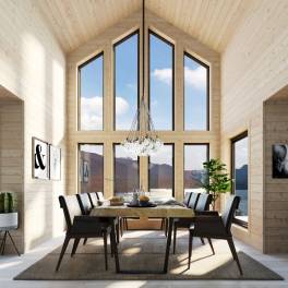 Deze imponerende woning met grote raampartijen zorgt door zijn hoogte voor een luxe uitstraling. De woonkamer is lekker ruim en heeft een luxe keuken met uitzicht op de natuur. De woning heeft drie ruime slaapkamers beneden en een luxe badkamer voorzien van sauna. Daarnaast zijn er boven nog twee ruime slaapkamers met een eigen badkamer. Kortom; de perfecte woning als u met meerdere mensen hier wilt genieten. Deze woning is geschikt voor een lang en breed kavel.