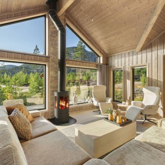 NIEUW in de verkoop: vrijstaande woning met luxe inrichting gelegen aan de bosrand bij het prachtige Nissermeer in Vrådal, Zuid-Noorwegen.