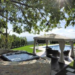 Buitenzwembad (50 vierkante meter) en luxe jacuzzi (geweldig uitzicht op zee en de bergen)