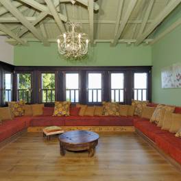 Bovenverdieping: Een trap leidt vanuit de woonkamer naar de ‘onda’s’, de traditionele zithoek van dit type huis met een open haard, zitgelegenheid rondom en ramen over twee volledige zijden die een fantastisch uitzicht bieden.