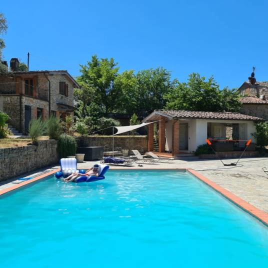 Het prestigieuze domein bestaat uit 3 volledig recent gerenoveerde gebouwen met vele kamers en badkamers en met een prachtig groot zwembad in uitstekende staat. Alles werd gerenoveerd met oog voor detail en met behoud van de rustieke Toscaanse stijl. Het pand bestaat uit verschillende stenen gebouwen die hieronder worden beschreven: