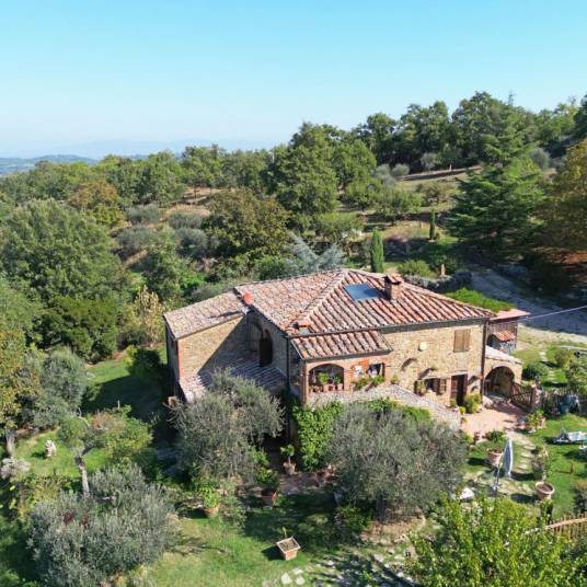 Het eigendom is omringd door 13 hectare grond, bestaande uit 4 hectare olijfgaard met ongeveer 400 bomen in productie en 3 hectare akkerland, terwijl de rest uit bos bestaat.