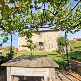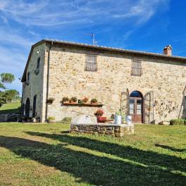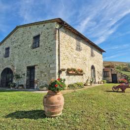 De boerderij in Val d’Orcia is gerestaureerd en verkeert in uitstekende staat. Zowel van buiten als van binnen heeft het de typische kenmerken van de oude toscaanse landhuizen behouden: de gevels met zichtbare stenen, de dakpannen, de interne vloeren in handgemaakte terracotta, de plafonds met balken en terracotta tegels.
