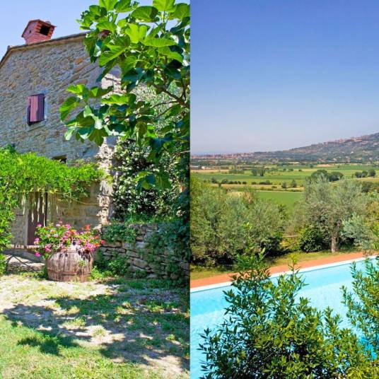 Volledig gerestaureerd stenen boerenhuis te koop op een uiterst panoramische positie in Cortona.