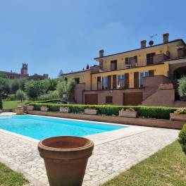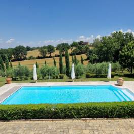 Naast de grote houten veranda met barbecue is er een zwembad van 6×12 en een tuin van 4000 vierkante meter met olijfgaard, met uitzicht op het dorp en de toren die het landschap domineert.