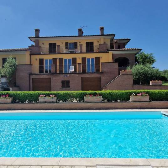 Deze moderne villa met zwembad ligt aan de voet van het historisch centrum van Marciano della Chiana, een klein dorpje in de Valdichiana dat zich bevindt op een heuvel op de grens tussen Siena en Arezzo.