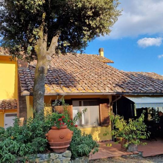 Deze prachtige villa met een prachtig panoramisch uitzicht is te koop op een heuvel in de Valdichiana, in het hart van Toscane, in de provincie Arezzo.