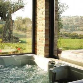 Around the Azienda is a spacious garden in which there is the swimming pool of 10x5m, with next to it in another restored building with a floor space of circa 90 square meters. This building contains another apartment, a hydro-massage, a sauna an extra toilet and a shower. The ‘wellness area’ is offering space for up to 6 persons. This part was restored in 2002.